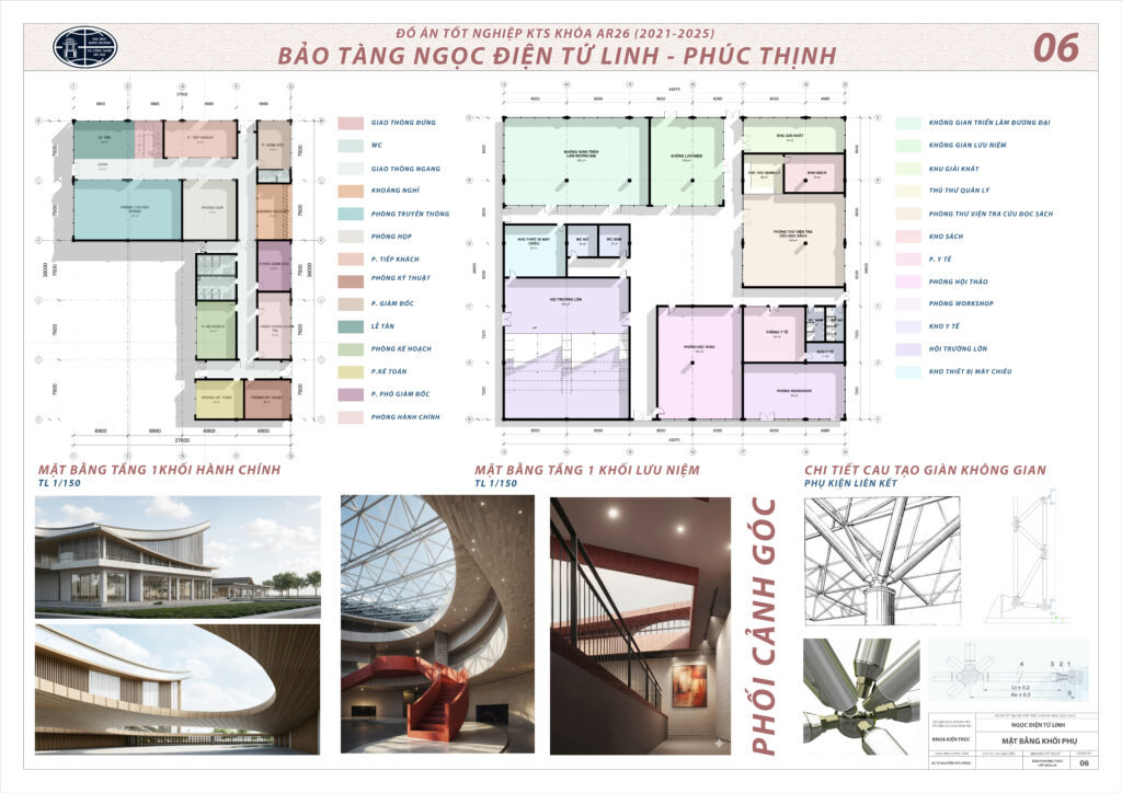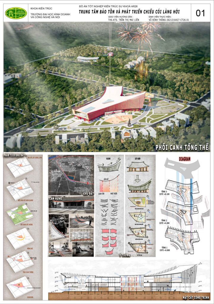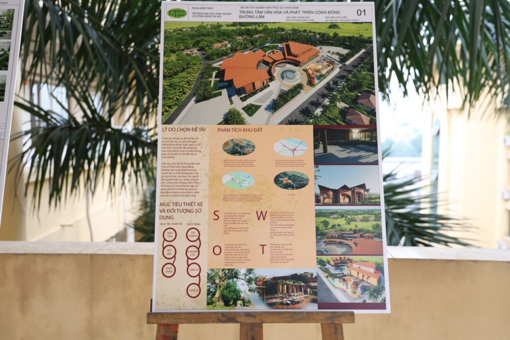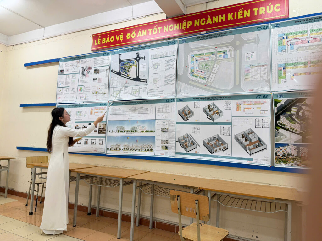 Các đồ án tốt nghiệp năm nay cho thấy sự đa dạng rõ nét về loại hình công trình và cách tiếp cận thiết kế. Từ các công trình văn hóa – giáo dục như bảo tàng, trung tâm văn hóa, trường học, đến các mô hình chung cư, nhà ở xã hội, khu ở sinh thái, mỗi đề tài đều phản ánh mối quan tâm sâu sắc của sinh viên đối với các vấn đề đương đại của xã hội, môi trường và bản sắc văn hóa.