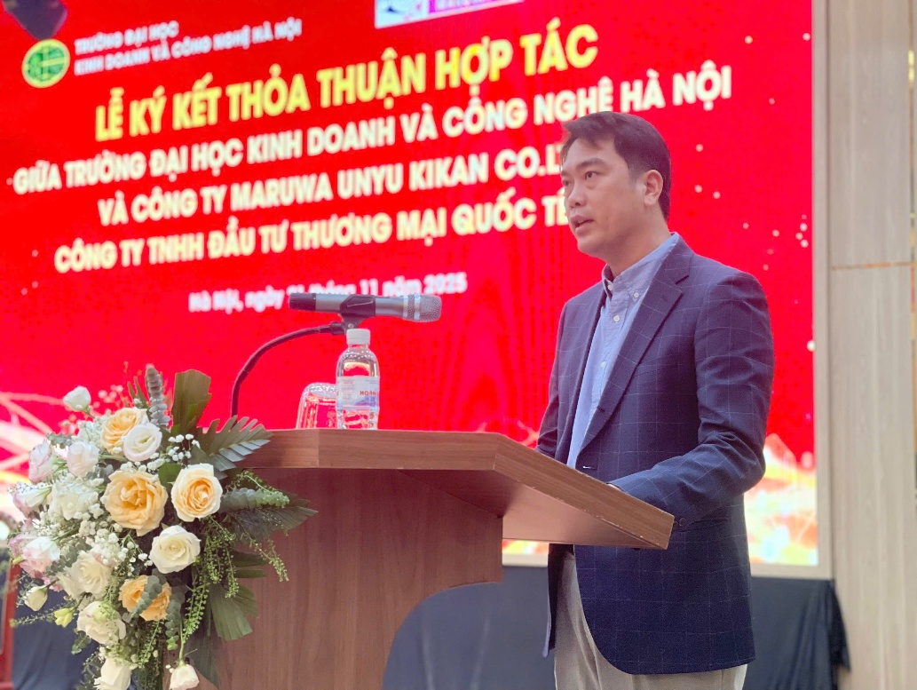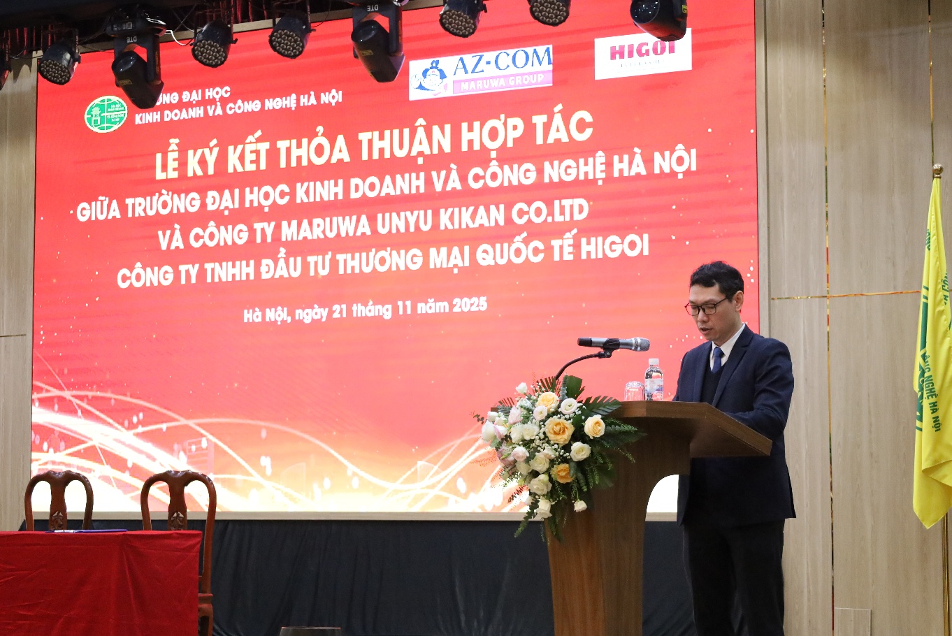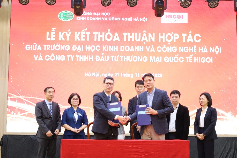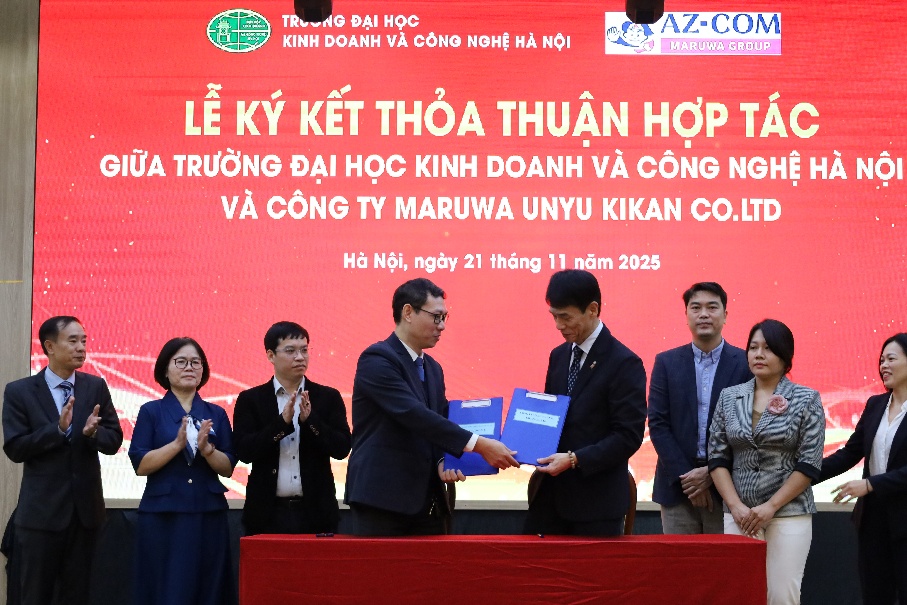 Ngày 21/11/2025, được sự đồng ý của Ban Giám hiệu Trường Đại học Kinh doanh và Công nghệ Hà Nội, Khoa Thương mại long trọng tổ chức lễ ký kết hợp tác với Tập đoàn Maruwa Unyu Kikan (Nhật Bản) và Công ty TNHH Đầu tư Thương mại Quốc tế HIGOI nhằm hỗ trợ sinh viên thực tập, tìm kiếm cơ hội việc làm tại Nhật Bản.
