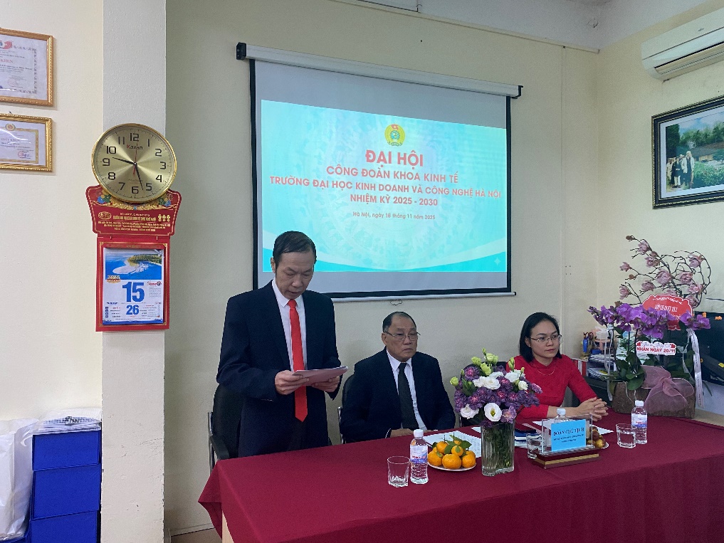 Đại hội Công đoàn khoa Kinh tế đã diễn ra thành công tốt đẹp, bầu ra ban chấp hành nhiệm kỳ 2025 – 2030 gồm 03 đồng chí. Ban Chấp hành nhiệm kỳ mới hứa quyết tâm đổi mới nội dung, phương thức hoạt động, góp phần xây dựng khoa kinh tế ngày càng vững mạnh và phát triển.