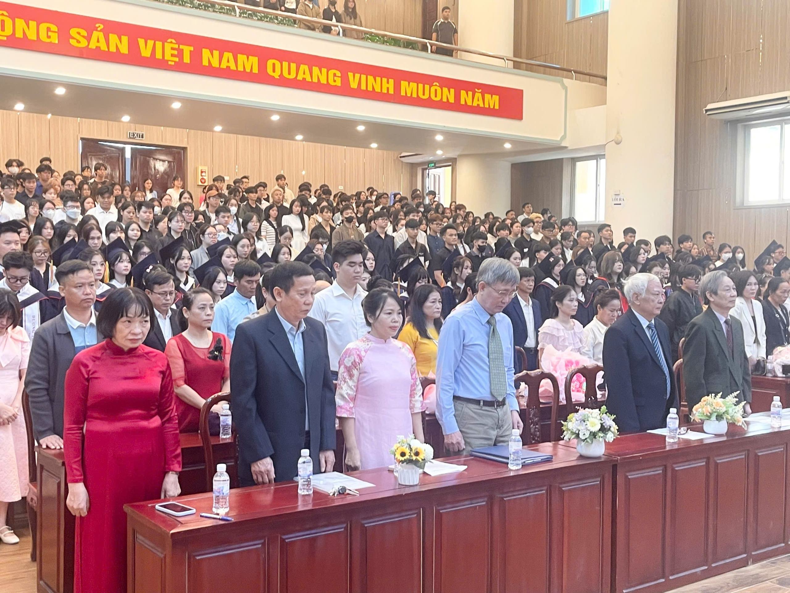 Trước khi bắt đầu buổi lễ, các đại biểu thực hiện nghi thức mặc niệm tưởng nhớ Giáo sư – Hiệu trưởng Trần Phương vừa qua đời.