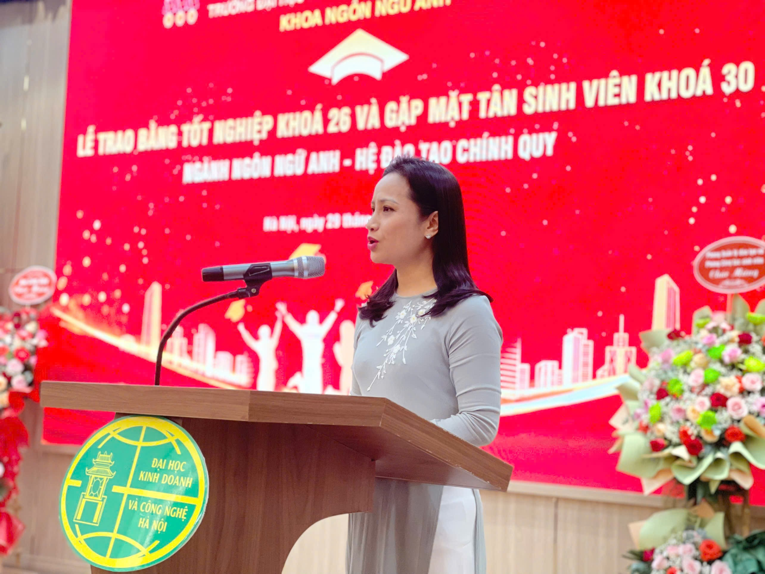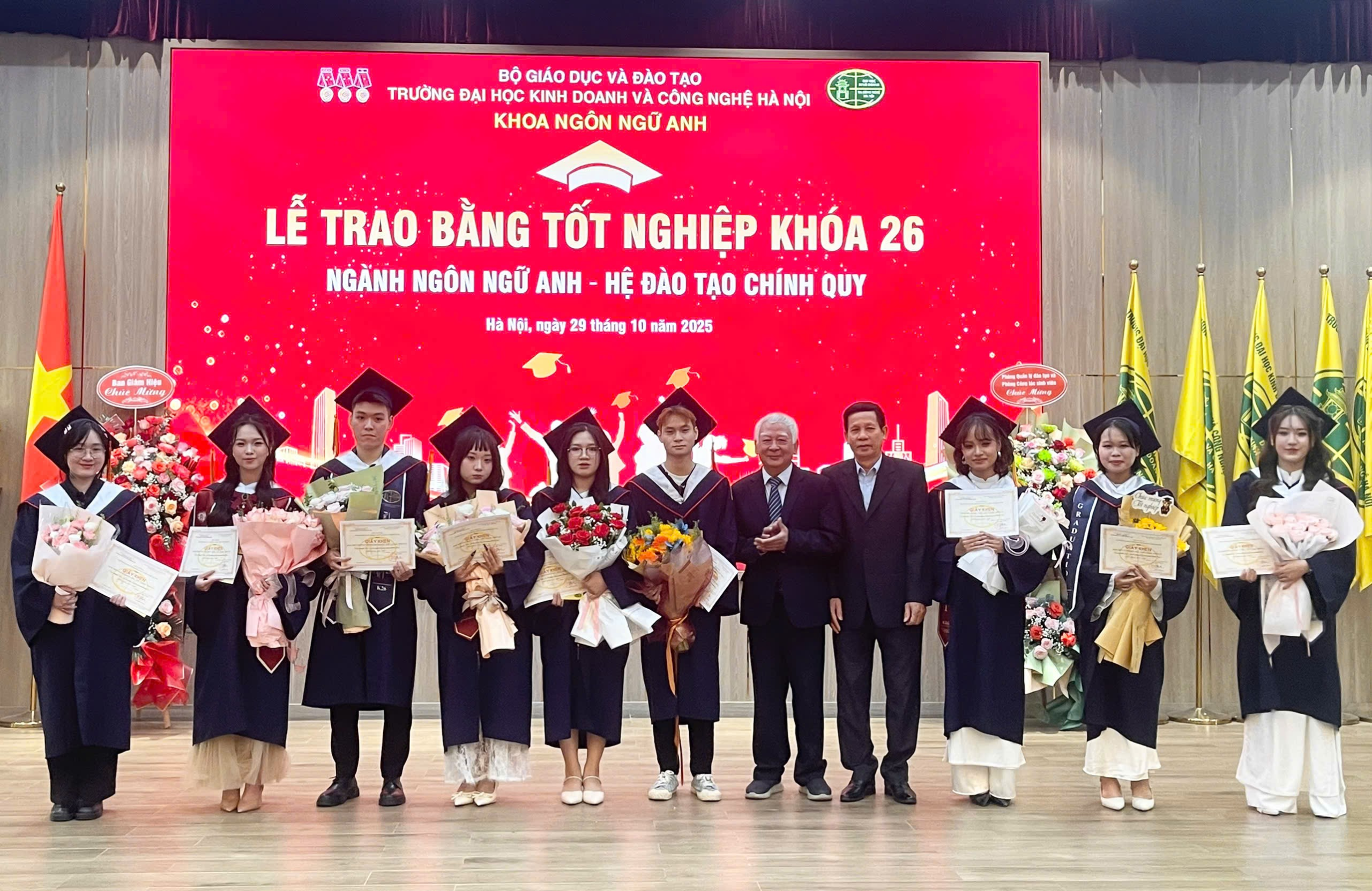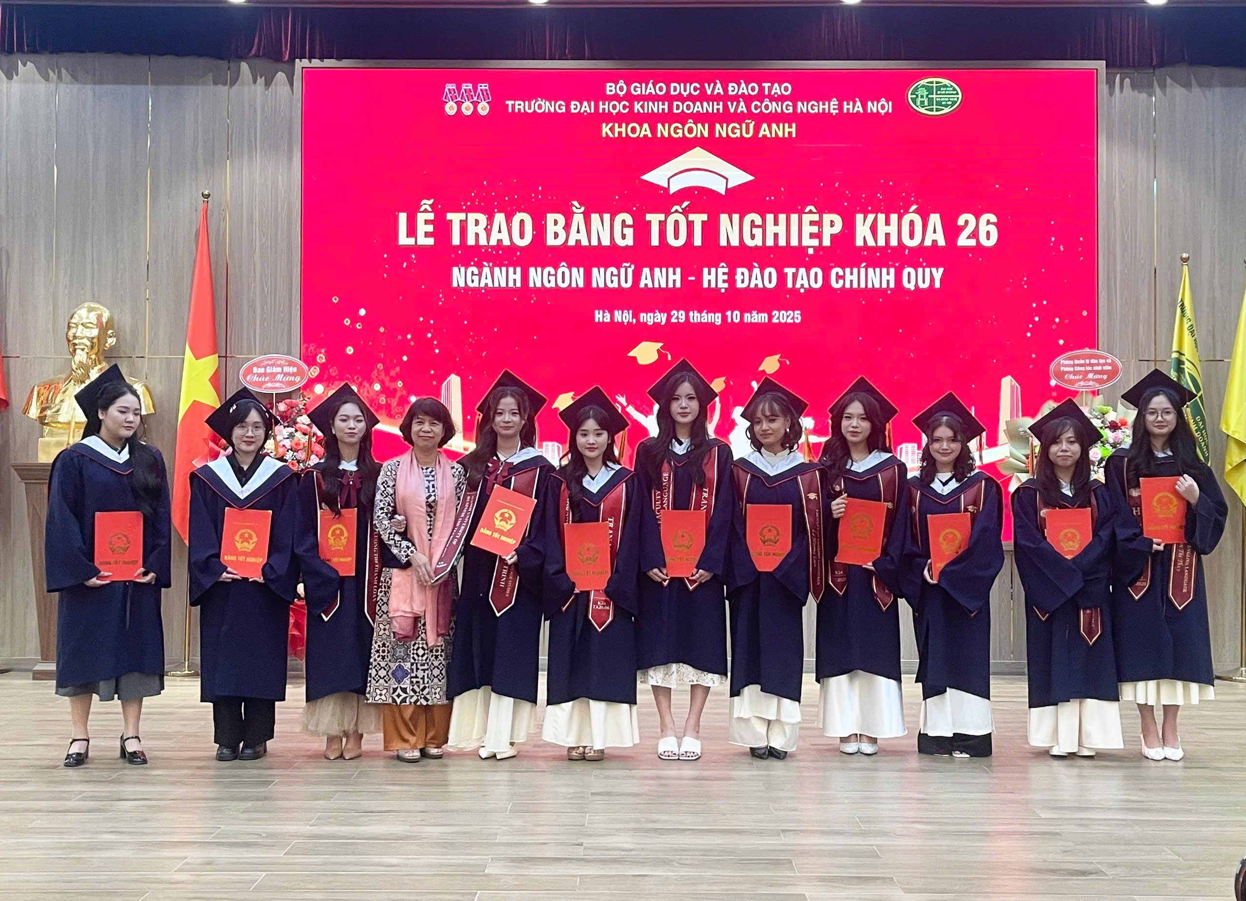 Ngày 29/10/2025, được sự đồng ý của Ban Giám hiệu Trường Đại học Kinh doanh và Công nghệ Hà Nội, Khoa Ngôn ngữ Anh long trọng tổ chức Lễ trao Bằng tốt nghiệp hệ Đại học chính quy cho các tân cử nhân khóa 26 và Gặp mặt tân sinh viên khoá 30.