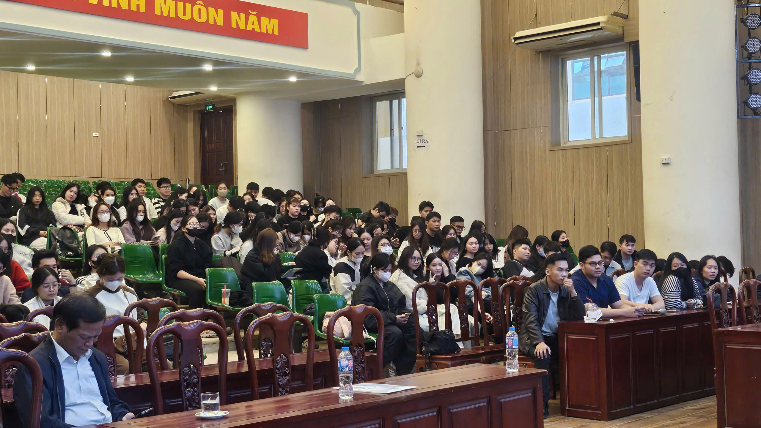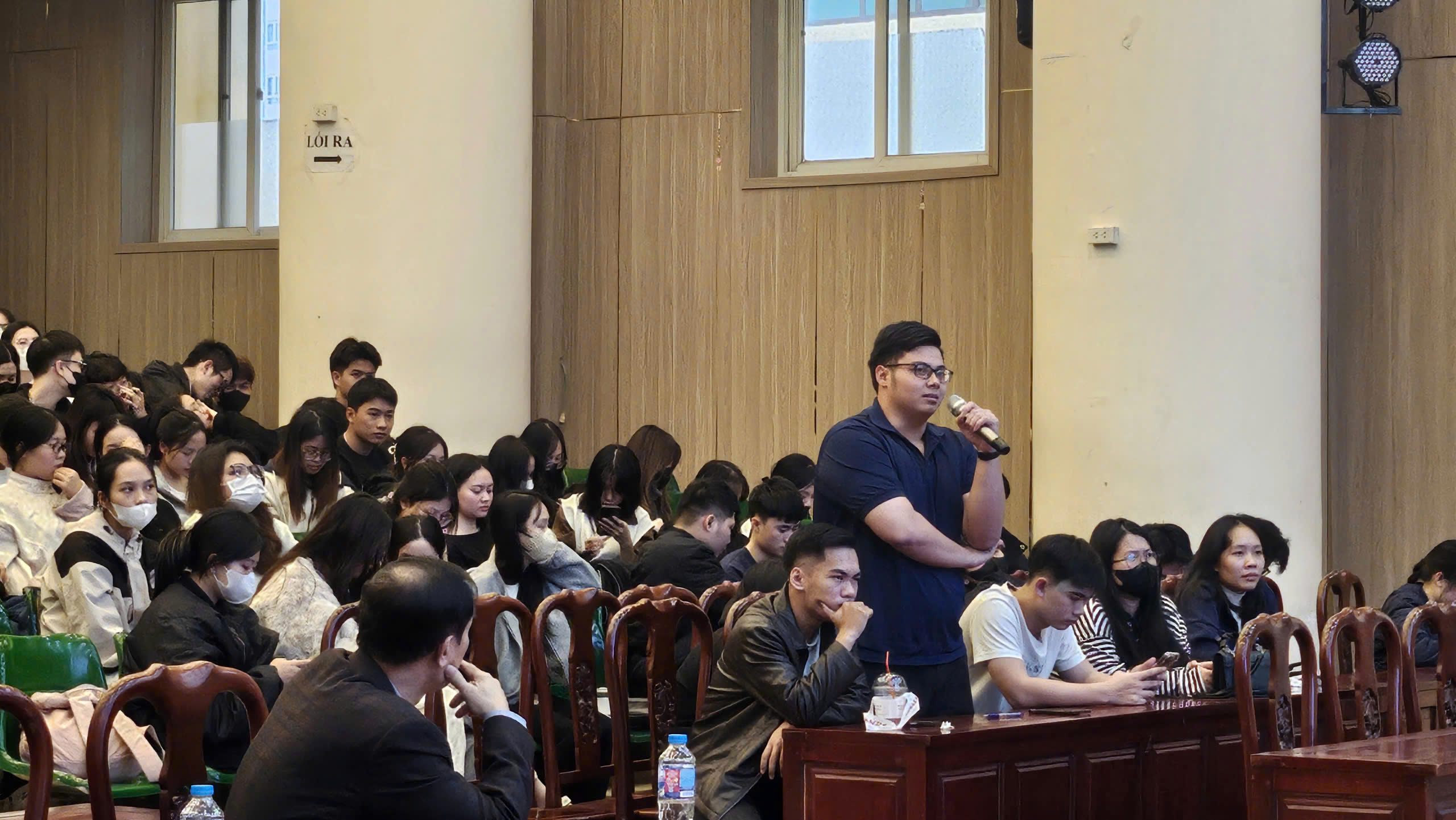 Chương trình thu hút 200 sinh viên khóa 27 ngành Kinh doanh Quốc tế, tạo nên không khí học thuật sôi nổi, với nhiều câu hỏi thực tế về nghề nghiệp, cơ hội thực tập và định hướng phát triển trong ngành logistics.
