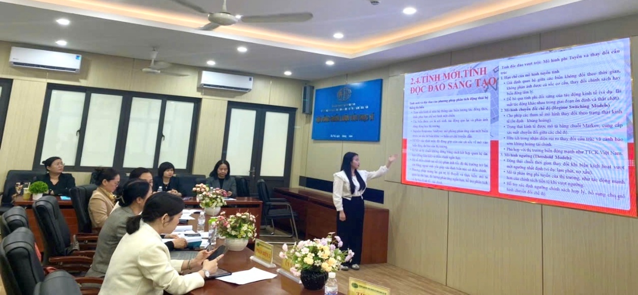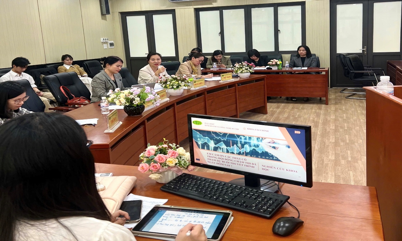 Hội đồng thẩm định gồm các giảng viên có kinh nghiệm nghiên cứu chuyên sâu của Khoa Tài chính đã thực hiện đánh giá khách quan, công tâm theo đúng quy trình. Các góp ý được đưa ra không chỉ tập trung vào việc chỉ rõ ưu điểm và hạn chế của từng đề tài mà còn định hướng cho sinh viên cách tiếp cận vấn đề theo chuẩn mực khoa học. Qua phần phản biện, sinh viên được rèn luyện kỹ năng trình bày, khả năng phản hồi câu hỏi và giải thích các lập luận khoa học, những kỹ năng thiết yếu đối với người làm nghiên cứu trong tương lai.