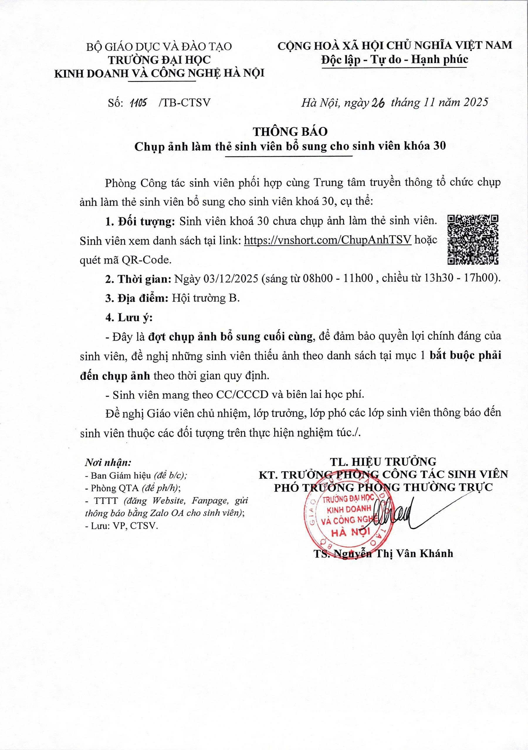 - Thông báo v/v Khám sức khoẻ, Chụp ảnh làm thẻ sinh…