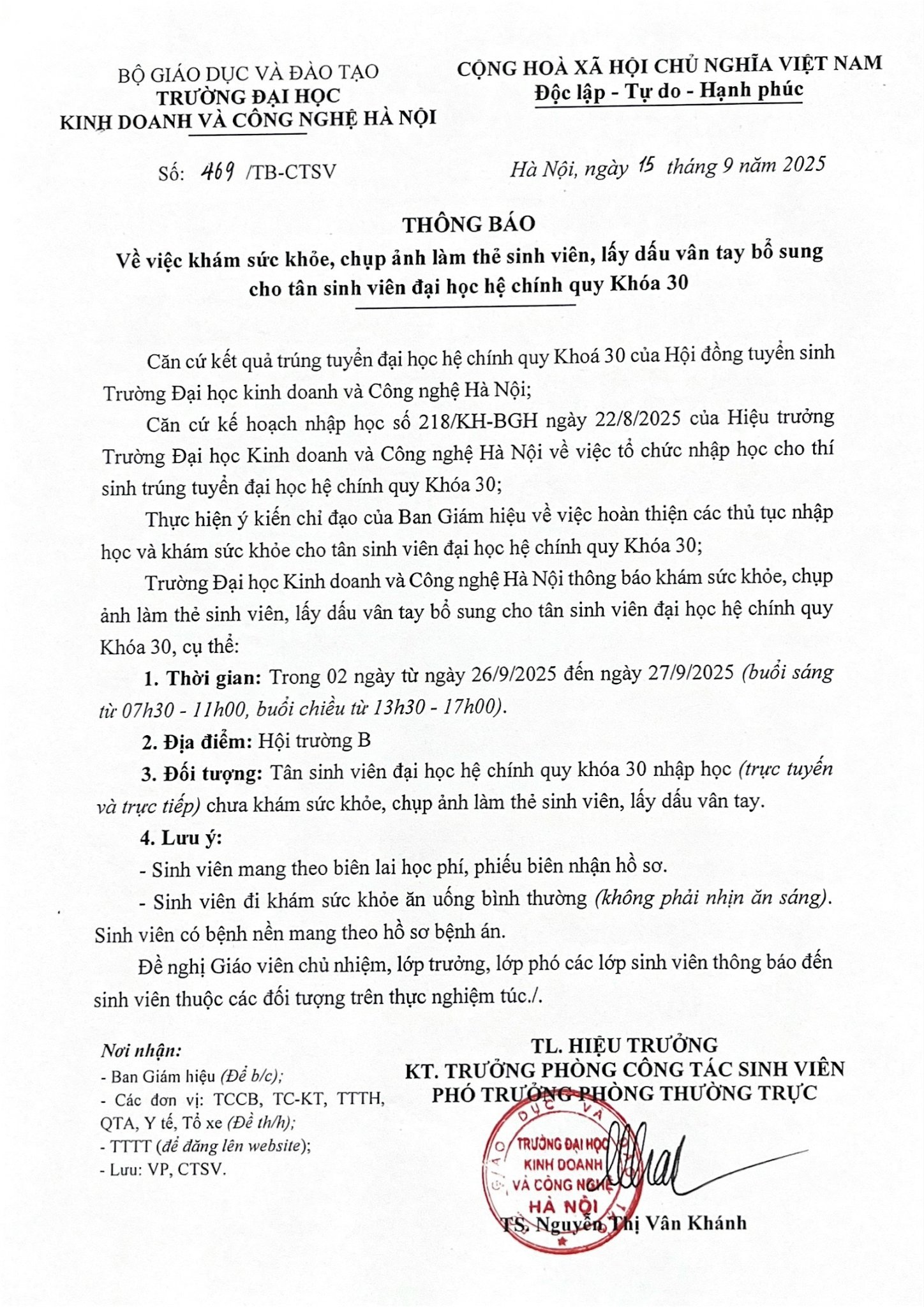 - Thông báo Chụp ảnh thẻ sinh viên bổ sung cho Khóa 30