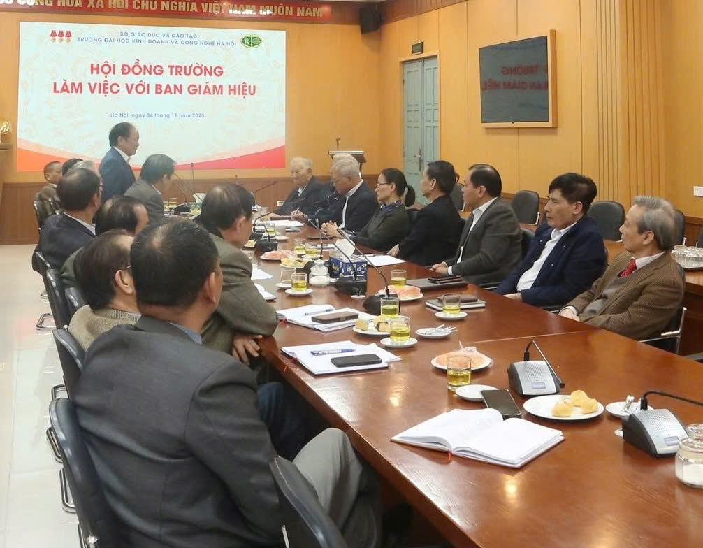 Ngày 04/11/2025, tại Phòng A204 cơ sở Vĩnh Tuy Trường Đại học Kinh doanh và Công nghệ Hà Nội, Thường trực Hội đồng Trường (HĐT) Trường Đại học Kinh doanh và Công nghệ Hà Nội đã có buổi làm việc với Ban Giám hiệu nhà trường. Cùng tham dự có các thành viên HĐT là CBGV trong Trường, Luật sư Trần Quốc Toản, Chủ tịch Công đoàn Trường, lãnh đạo Phòng TCCB và Văn phòng Trường.