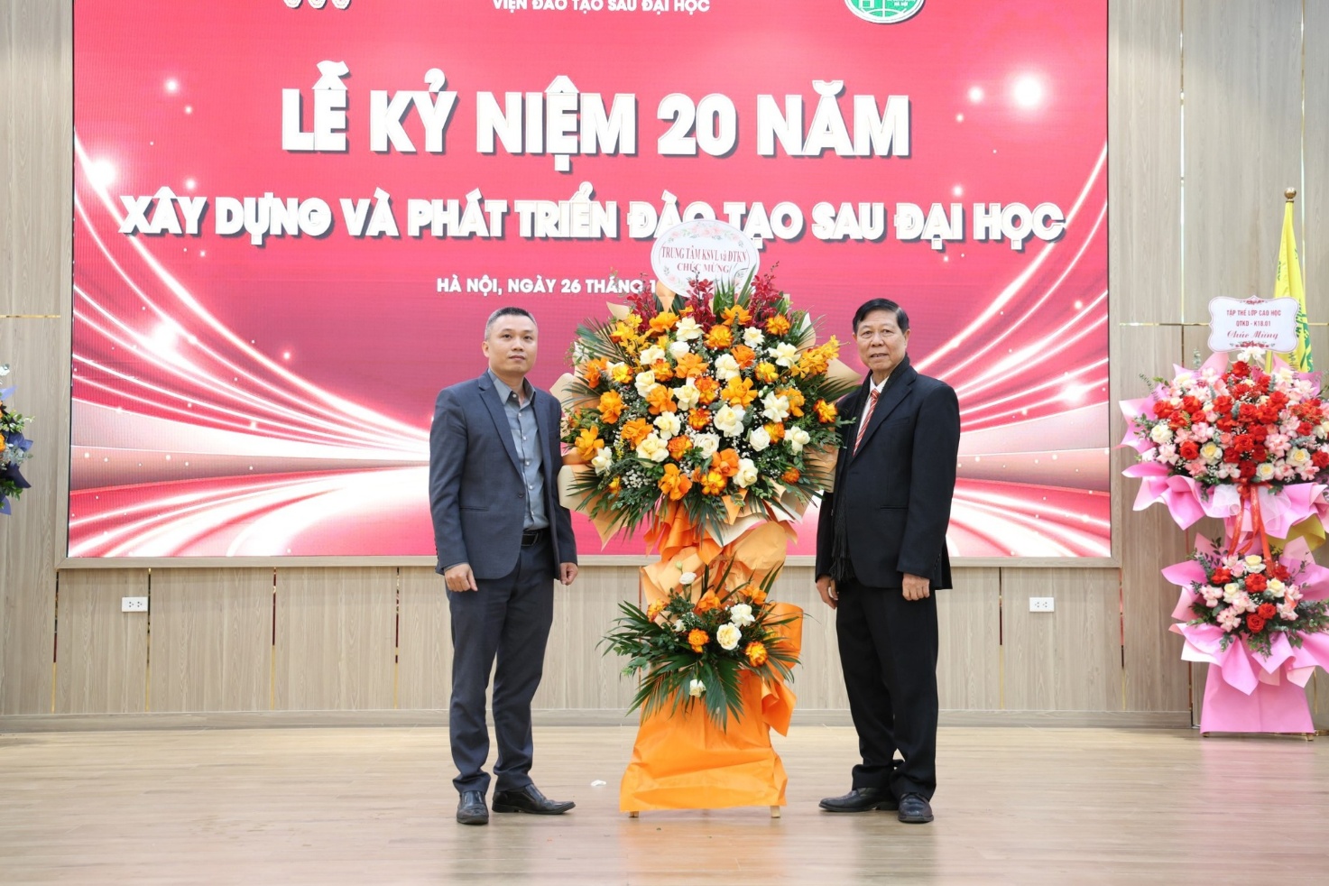 Ban Giám hiệu tặng hoa chúc mừng 20 năm thành lập Viện Đào tạo Sau đại học