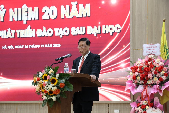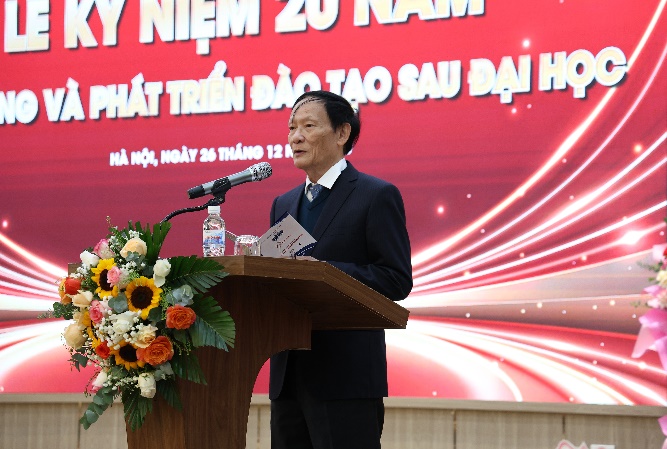 Tại lễ kỷ niệm, PGS.TS. Phạm Văn Đăng – Phó Viện trưởng thường trực Viện Đào tạo Sau đại học đã trình bày Báo cáo tổng kết 20 năm xây dựng và phát triển công tác đào tạo sau đại học.