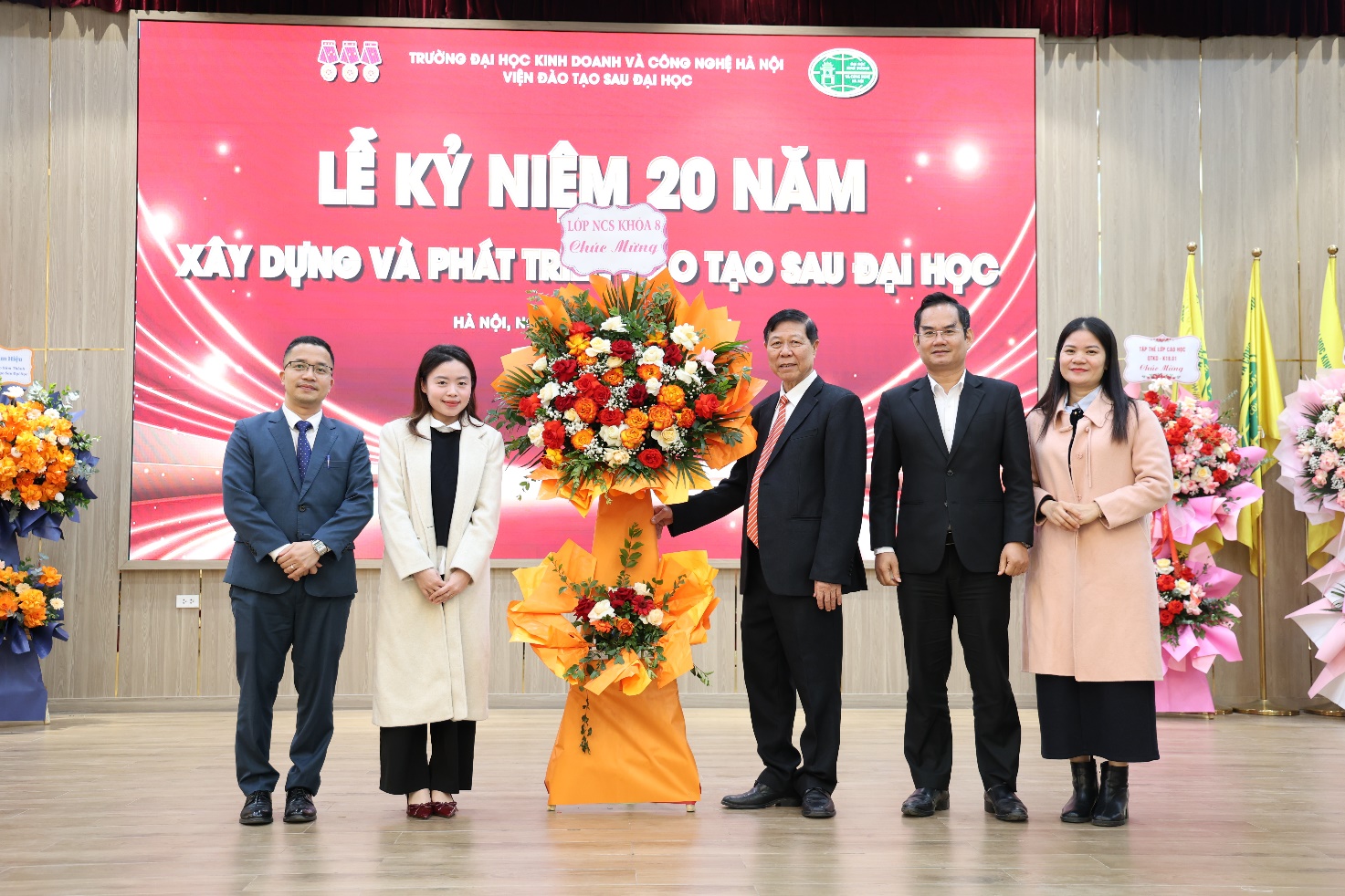 Ban Giám hiệu và Viện Đào tạo Sau đại học HUBT nhận hoa tri ân từ các thế hệ học viên