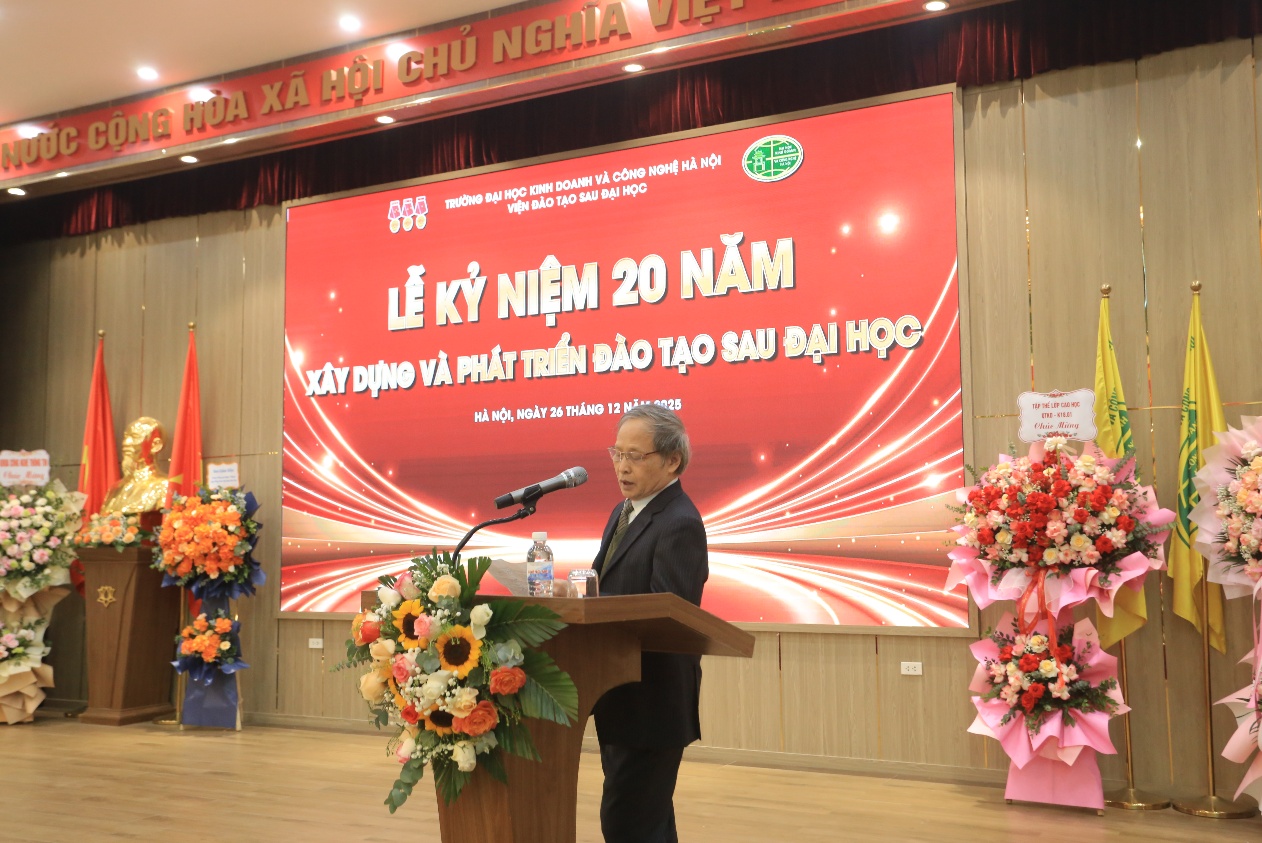 Ngày 26/12/2025, Viện Đào tạo Sau đại học – Trường Đại học Kinh doanh và Công nghệ Hà Nội đã long trọng tổ chức Lễ kỷ niệm 20 năm xây dựng và phát triển đào tạo sau đại học. Sự kiện không chỉ đánh dấu một chặng đường hai thập kỷ đầy tự hào, mà còn là dịp nhìn lại hành trình bền bỉ xây dựng và trưởng thành, đồng thời khẳng định tầm nhìn đổi mới, sẵn sàng nắm bắt những vận hội mới trong kỷ nguyên tri thức.