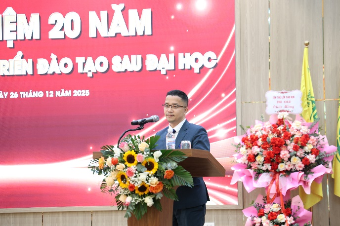 Phát biểu tại buổi lễ, GS.TS. Nguyễn Công Nghiệp – Phó Hiệu trưởng phụ trách Nhà trường đã ghi nhận và đánh giá cao những đóng góp quan trọng của Viện Đào tạo Sau đại học đối với sự phát triển chung của Trường. Đồng thời, ông bày tỏ, với mục tiêu, sứ mệnh và giá trị cốt lõi của Trường, tập thể lãnh đạo và cán bộ Viện Đào tạo Sau đại học sẽ tiếp tục chủ động, linh hoạt trong điều hành và nâng cao hiệu quả triển khai nhiệm vụ, chinh phục những đỉnh cao mới; qua đó phát huy xứng đáng truyền thống 20 năm xây dựng và phát triển, lập thành tích thiết thực hướng tới kỷ niệm 30 năm thành lập Trường (1996 – 2026).