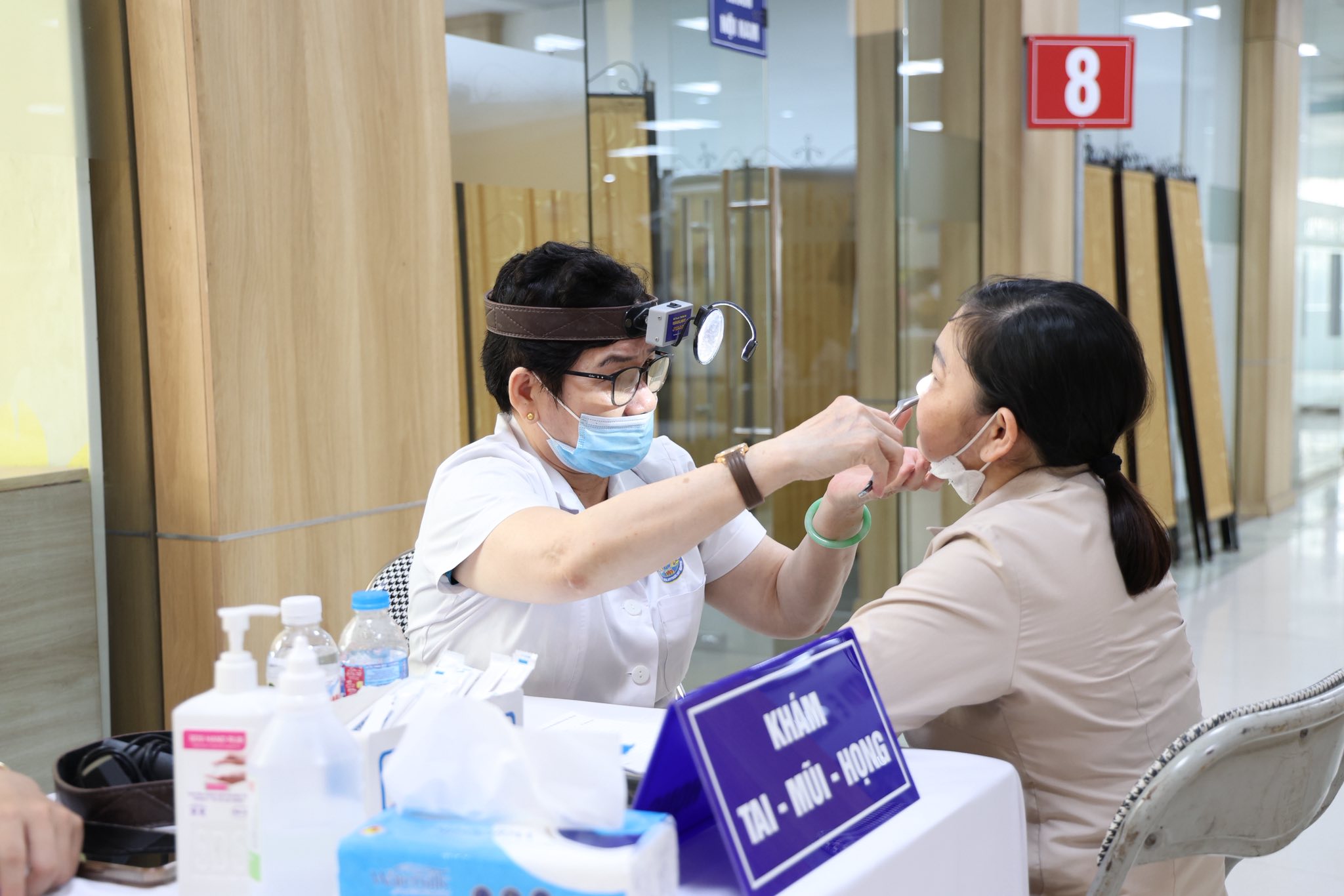 Các y bác sĩ tận tình thăm khám và tư vấn sức khỏe cho cán bộ, giảng viên, nhân viên Nhà trường.