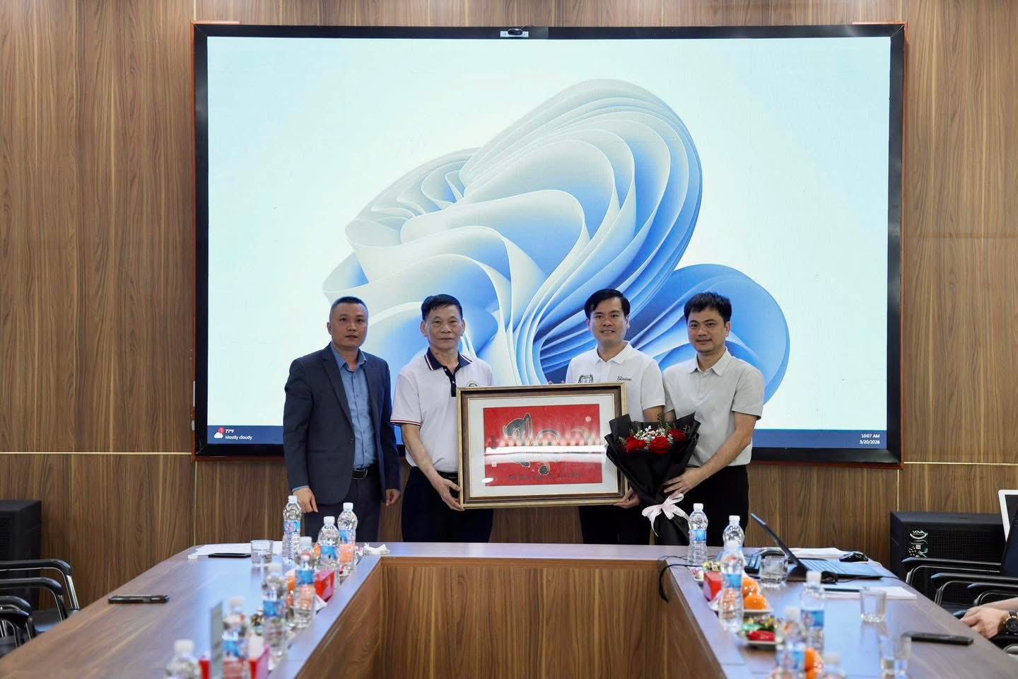 Lãnh đạo Khoa Kinh tế và Trung tâm Khảo sát việc làm và Đào tạo khởi nghiệp HUBT trao tặng quà lưu niệm cho Công ty Cổ phần May BGG Lạng Giang