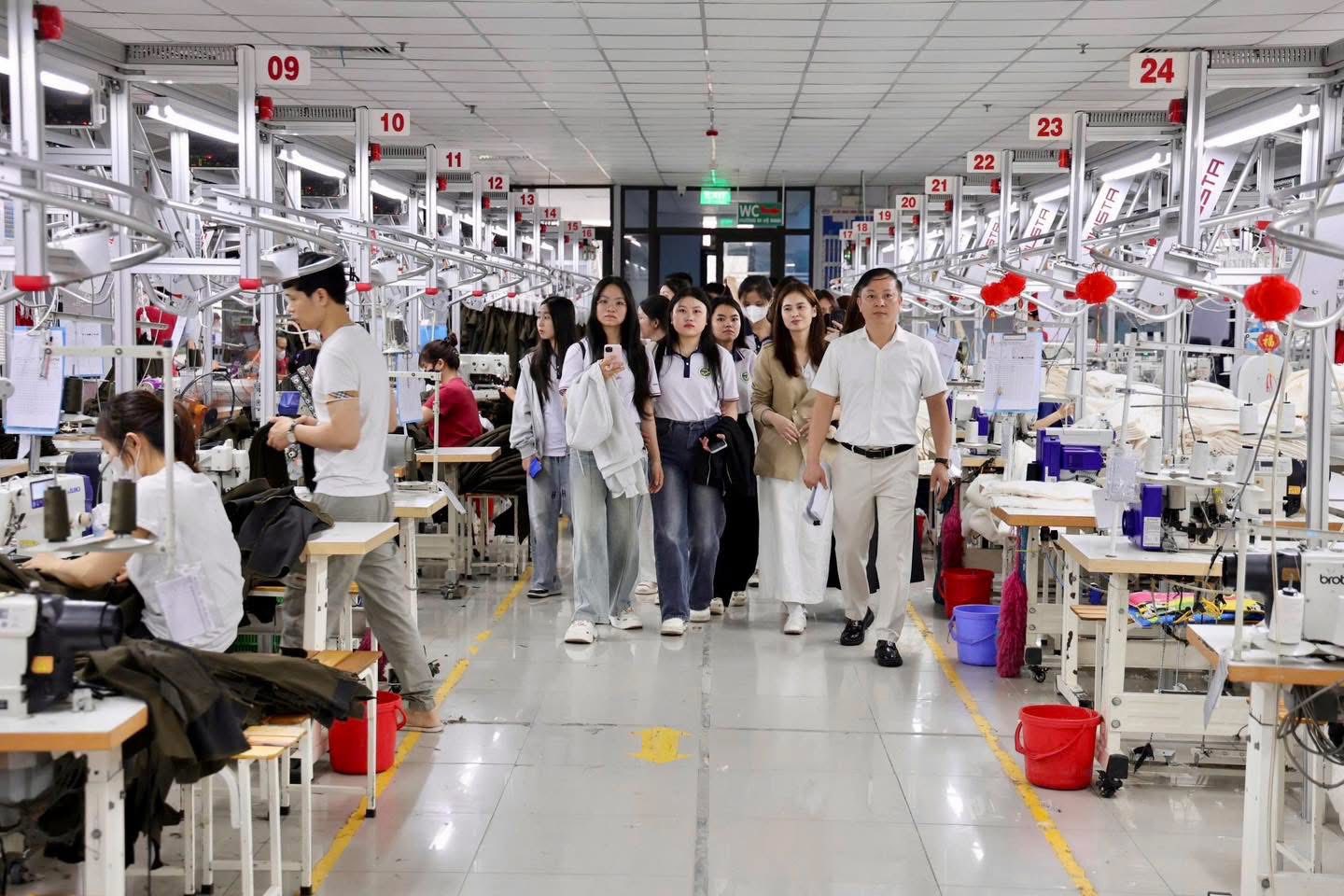 Chuyến đi trải nghiệm thực tế là minh chứng cụ thể cho chiến lược đào tạo theo định hướng ứng dụng mà Khoa Kinh tế cũng như HUBT đang triển khai. Điểm đến lần này là Công ty Cổ phần May BGG Lạng Giang. Đây là đơn vị thành viên trẻ thuộc Tổng Công ty May Bắc Giang BGG – một doanh nghiệp tiêu biểu với bề dày 54 năm phát triển. Với quy mô nhân sự hơn 1.600 người và vị thế dẫn đầu về năng suất trong ngành may mặc tại địa phương, Công ty Cổ phần May BGG Lạng Giang chính là một hình mẫu sống động về quản trị và sản xuất cho sinh viên ngành Kinh tế.